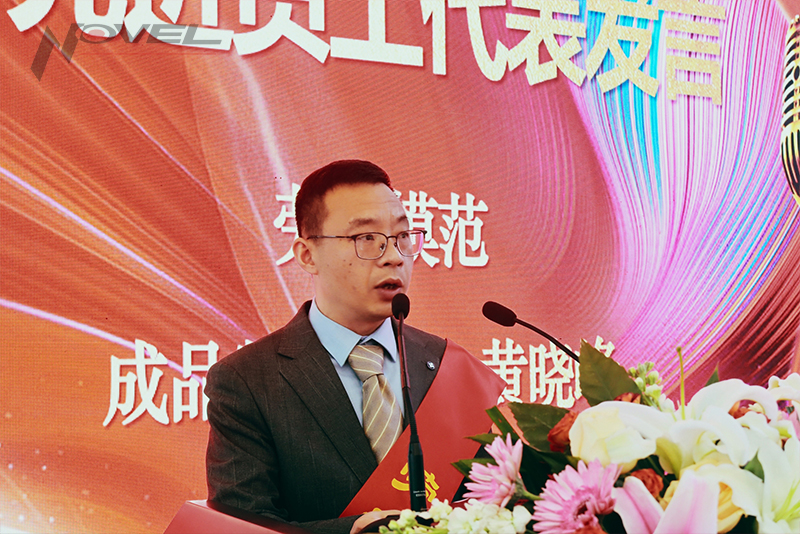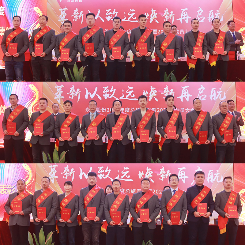 王長春副總經(jīng)理宣讀《2024年度先進個人、先進集體表彰決定》。各位先進代表在平凡的工作崗位上,堅持高標準嚴要求,兢兢業(yè)業(yè)完成本職工作,用智慧和汗水奮勇打拼,為永新發(fā)展匯聚出磅礴力量。勞動模范、成品制造部黃曉峰代表受表彰的先進員工發(fā)言。